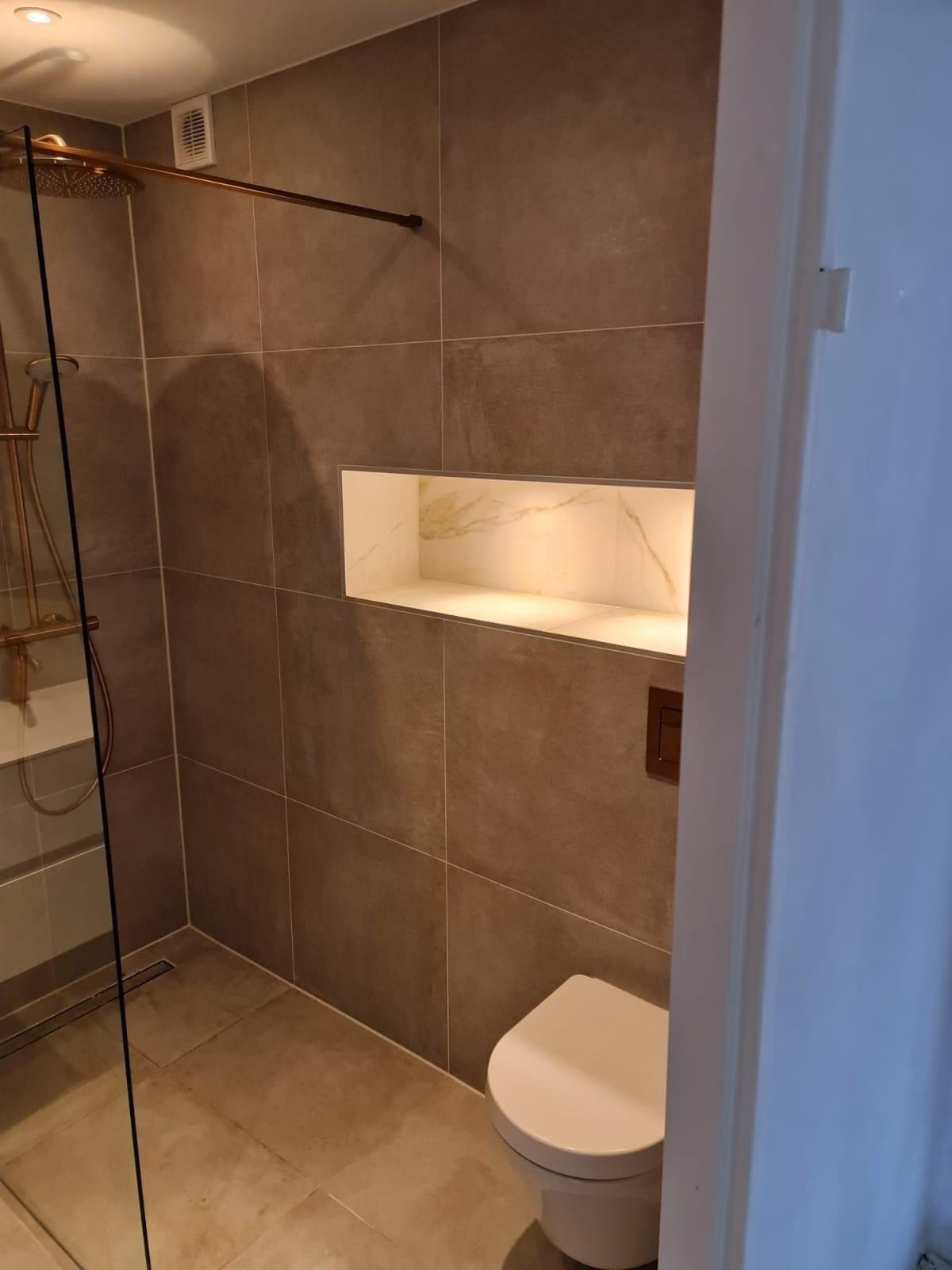 Wanneer de huidige situatie van het leidingwerk niet meer in overeenstemming is met uw behoeften, kunnen wij het leidingwerk voor u omleggen. Het omleggen van bestaand leidingwerk vereist vooral veel bochtenwerk. Het is daarom raadzaam om dit uit te laten voeren door een deskundige op dit gebied. We hebben hier veel ervaring en bieden niet alleen vakwerk aan, maar ook alle materialen die nodig zijn om deze werkzaamheden uit te voeren. Wij leggen de leiding om en werken deze netjes weg achter het tegelwerk met speciaal gereedschap, zoals een sleuvenfrees. Een andere manier om leidingen uit het zicht te halen, is door een houten koof te plaatsen en deze vervolgens te betegelen.